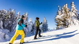 Schneeschuh-Erlebnis mit der SOB: An- und Rückreise, Heissgetränk im Zug, Rundreiseticket Feldis, optional Schneeschuhe und Churer Picknick-Säckli. Ab CHF 73.– pro Person.