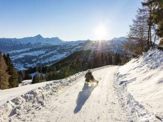Die Schlittelwege in Brambrüesch und Feldis sowie die Rodelbahn in Pradaschier ergänzen das Schneeschuh-Erlebnis und sorgen für Abfahrts-Spass zum Abschluss der Touren!